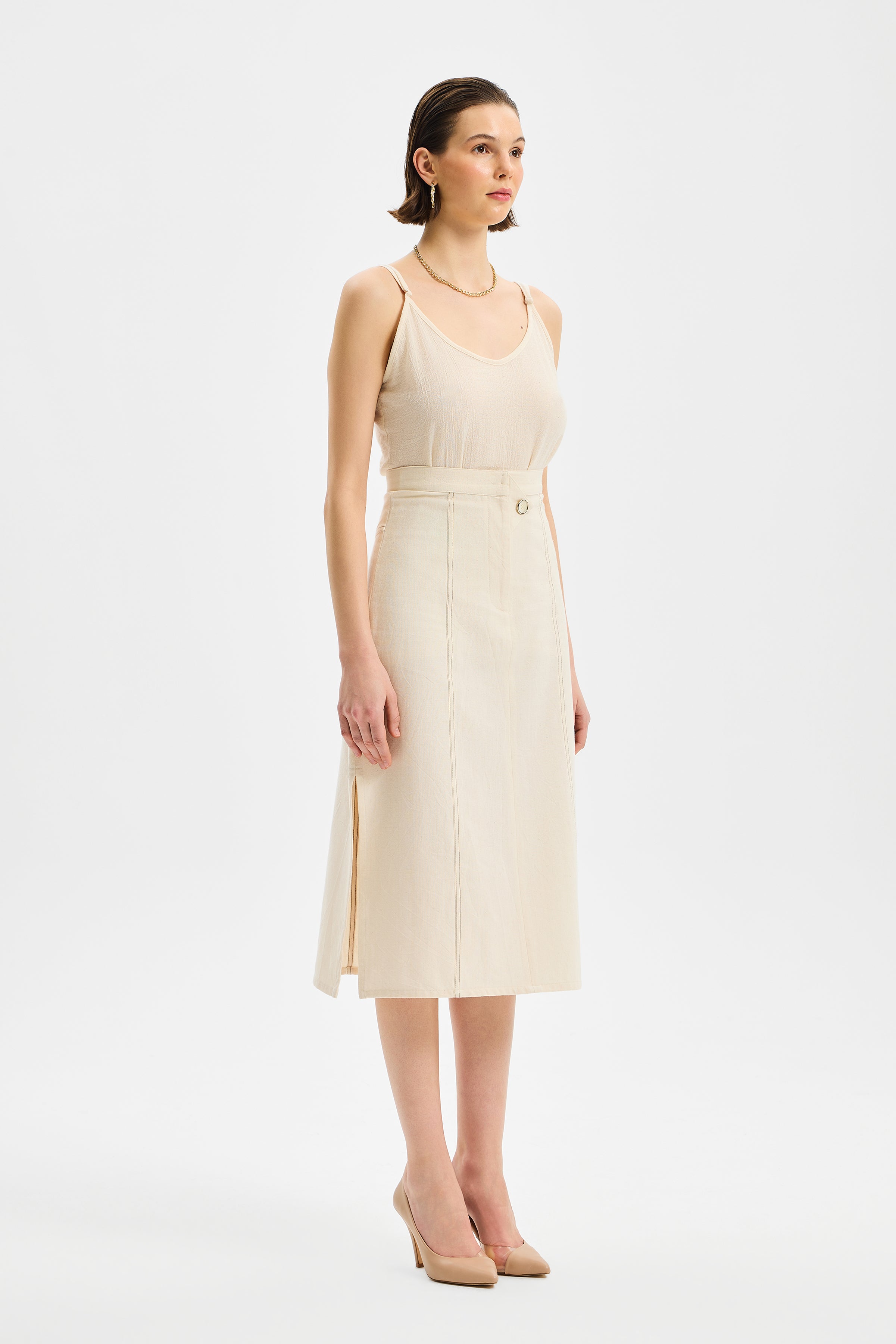 The AXIS Midi Slim Skirt Ecru is crafted in STRUCTURED (TOK) Şile Bezi
