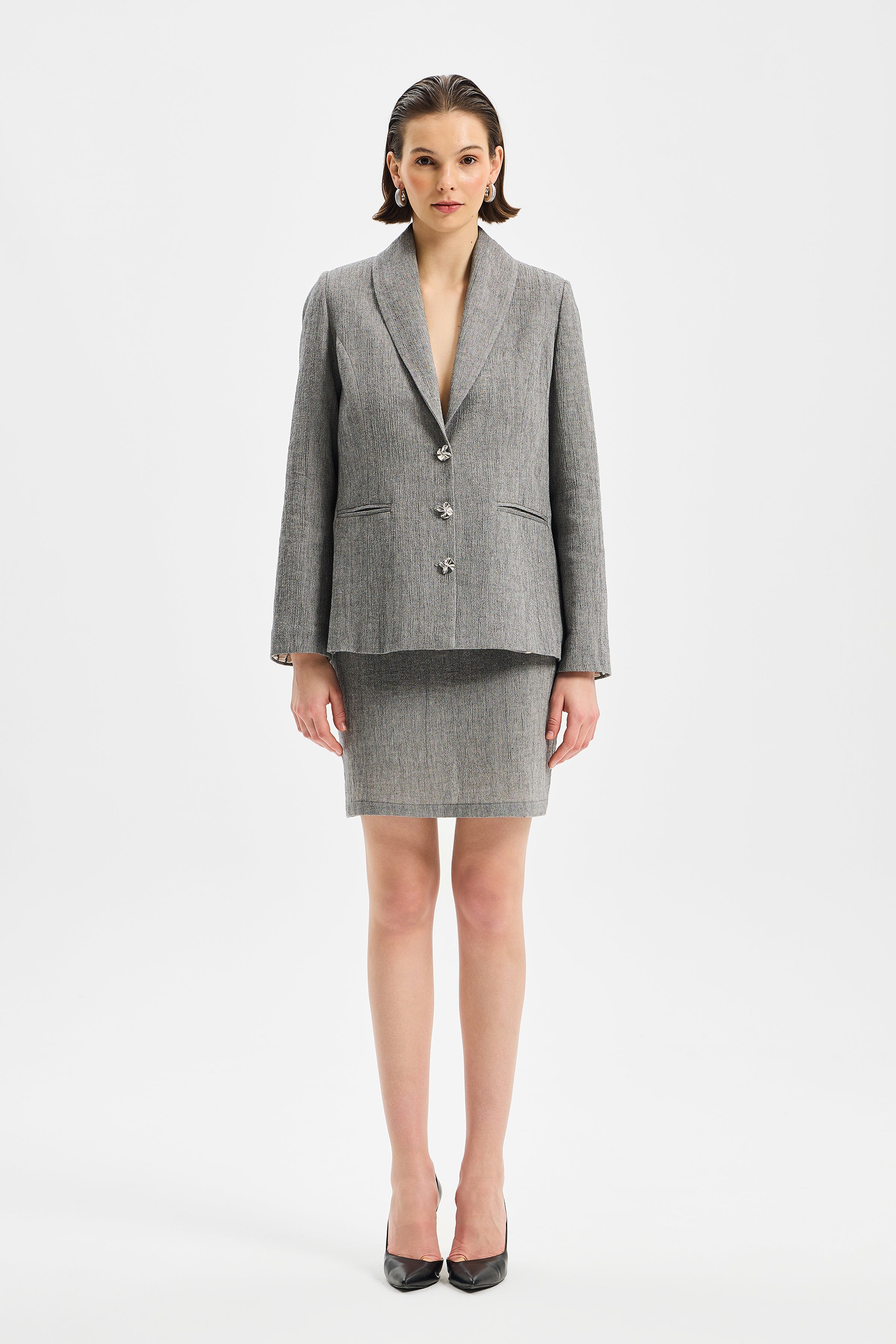 NODUS interprets the mini skirt through a refined and controlled approach to structure. Its clean cut and short length define the silhouette with understated precision, while the soft character of İNCE (Lightweight) Şile Bezi introduces fluidity, breathability, and gentle movement. A cleanly finished waistband clarifies the relationship between garment and body, creating a poised and balanced stance.