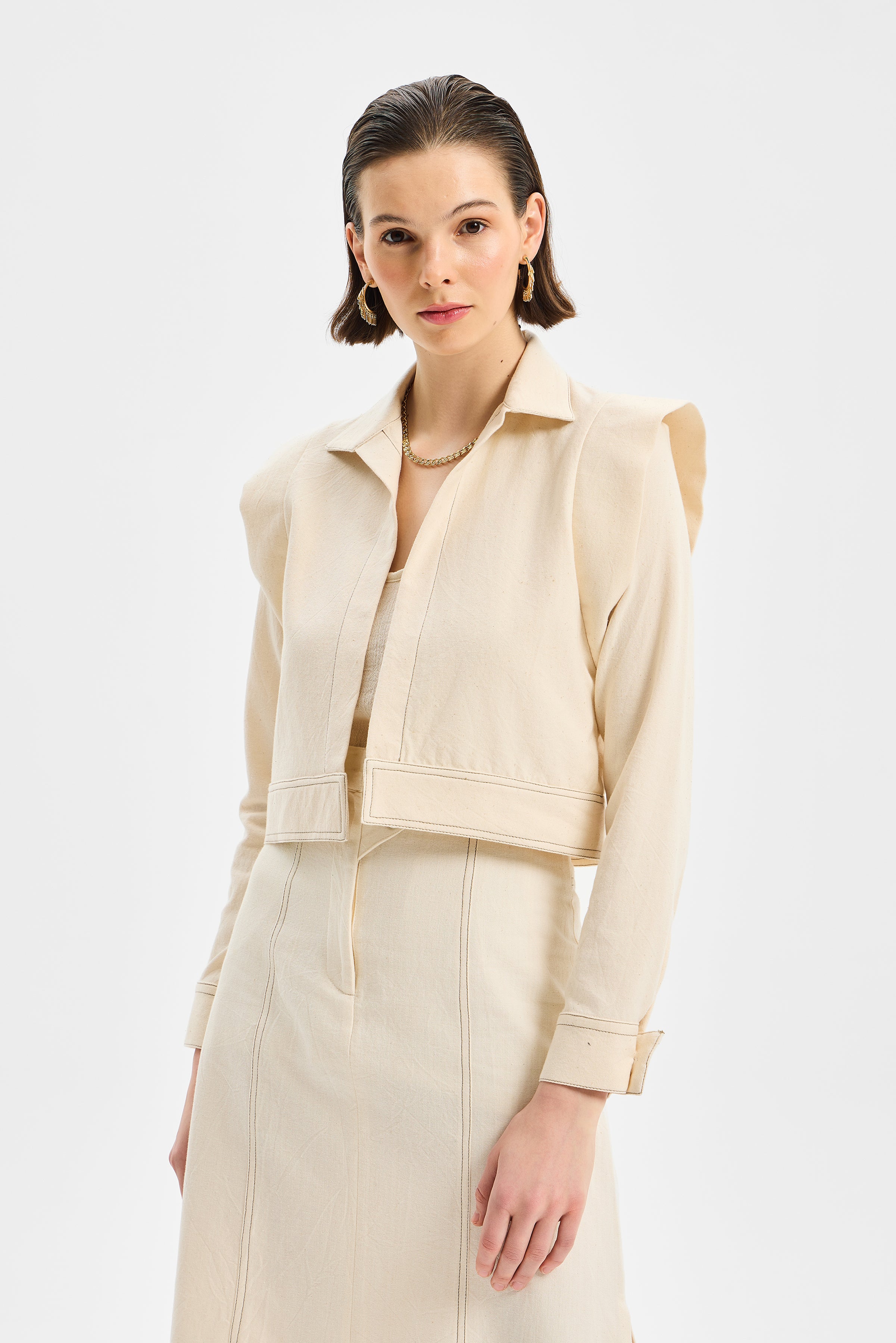 FRAME – Taş Rengi Kadın Kısa Ceket, TOK Şile Bezi kullanılarak tasarlanmıştır.