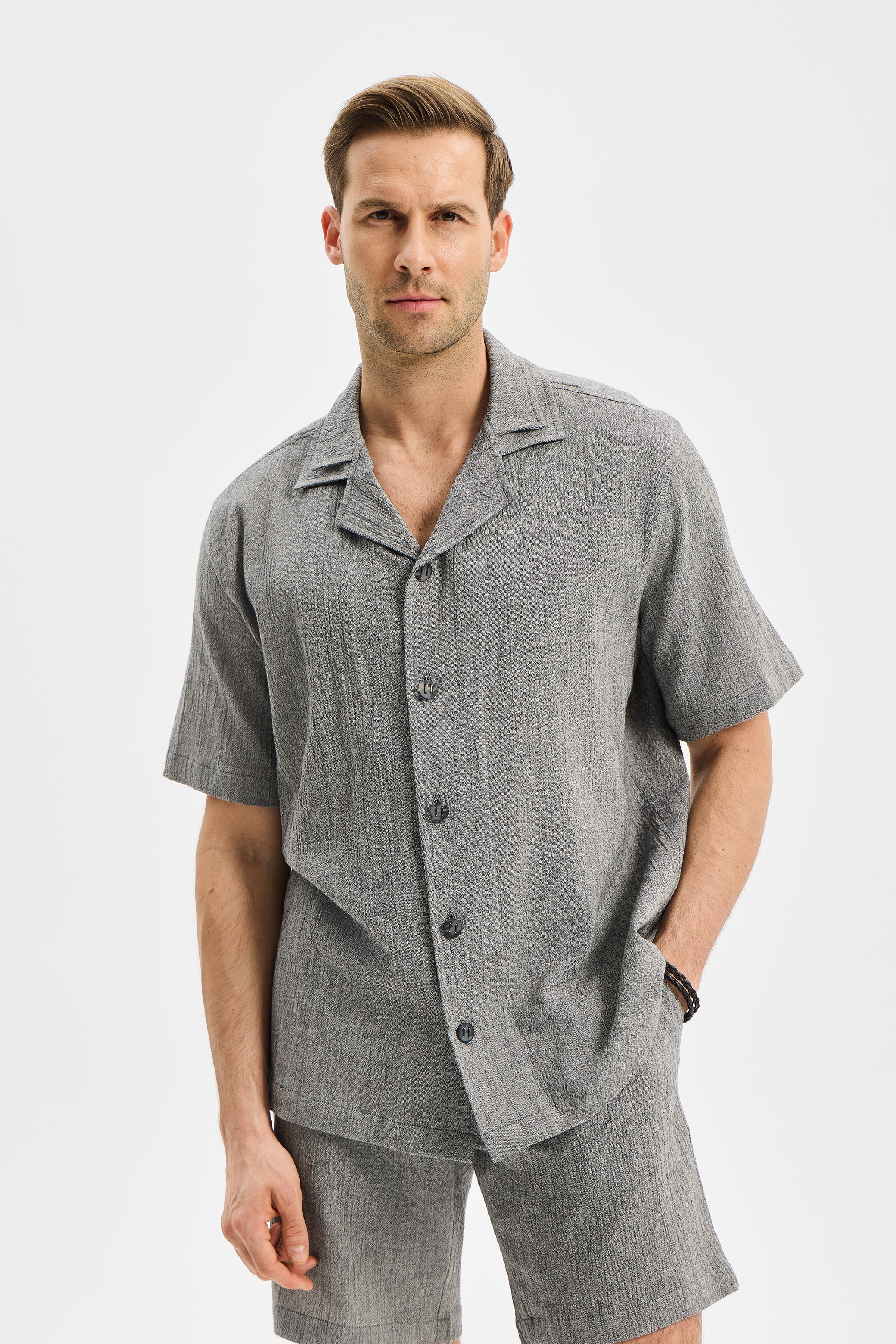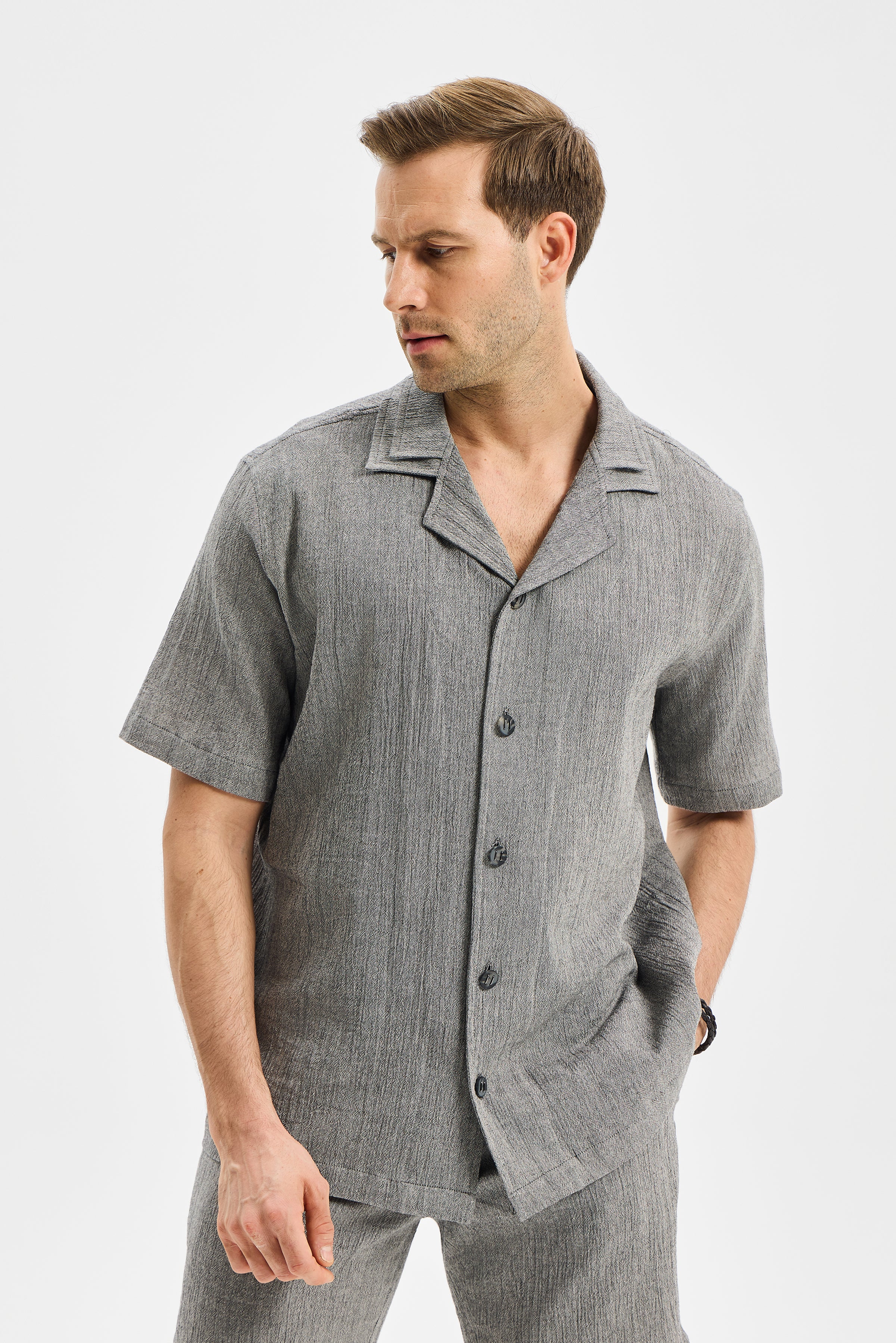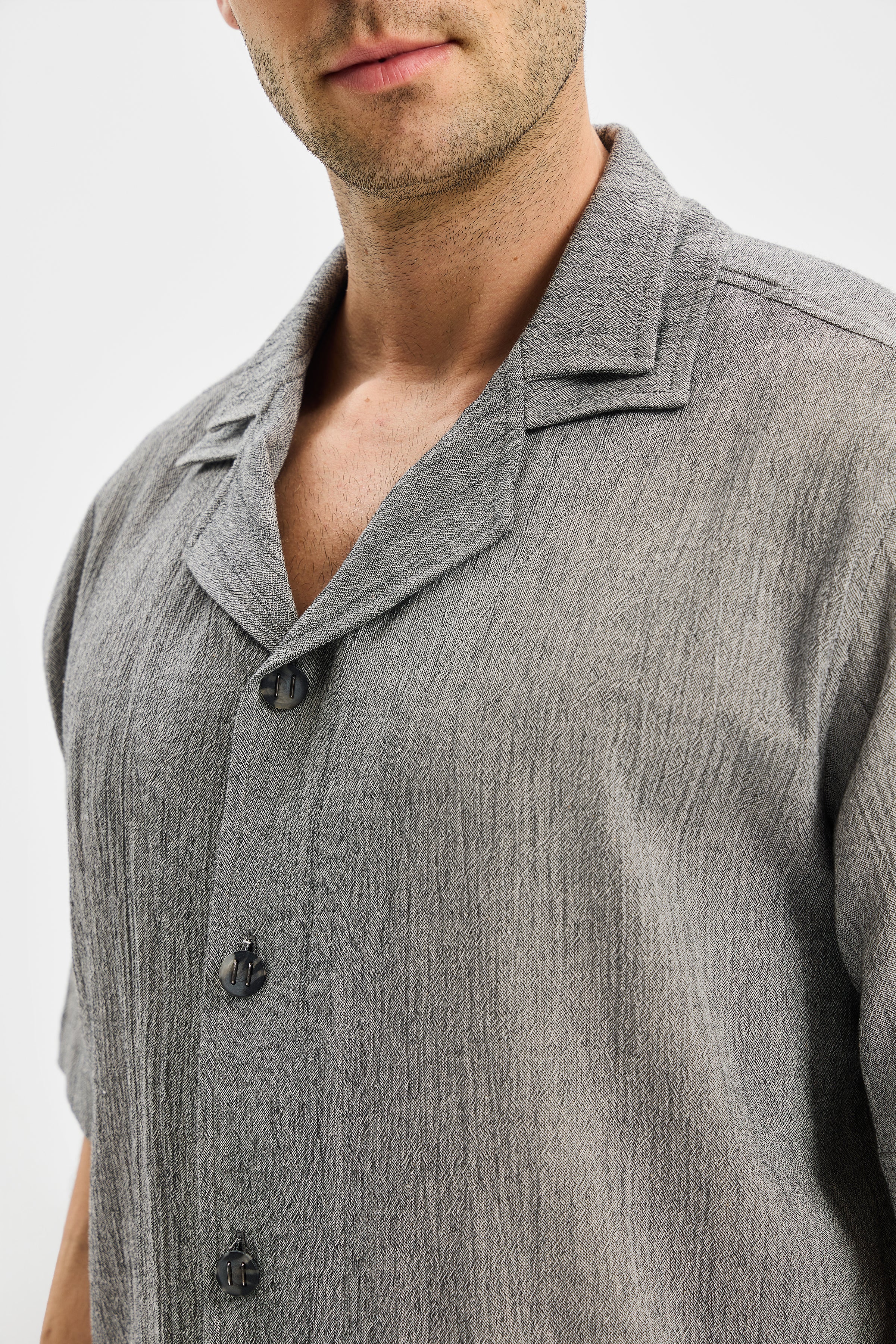 LAYER Erkek Çift Kat Apaj Yaka Gömlek Antrasit Siyah modeli, İNCE Şile Bezi kullanılarak tasarlanmıştır.
