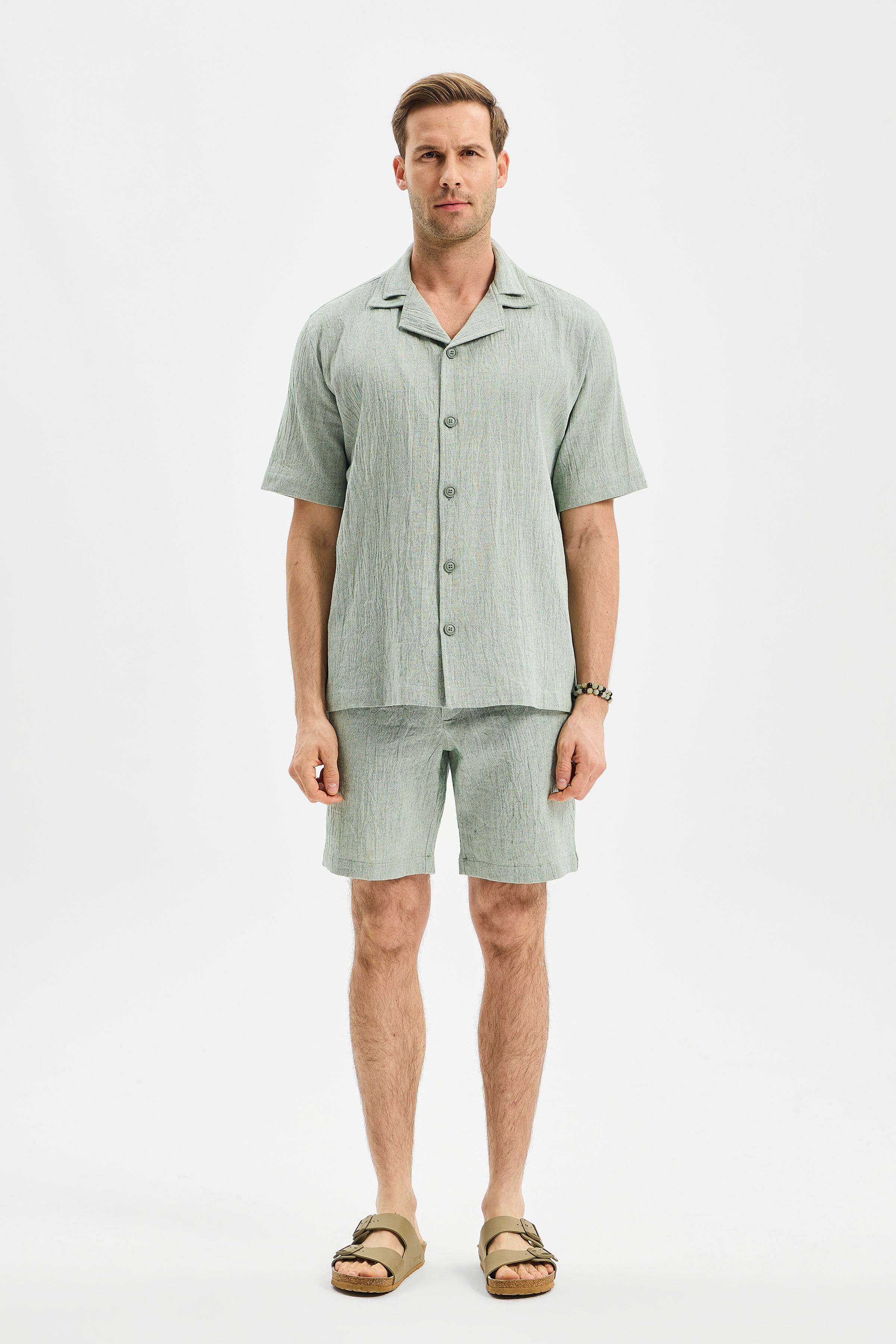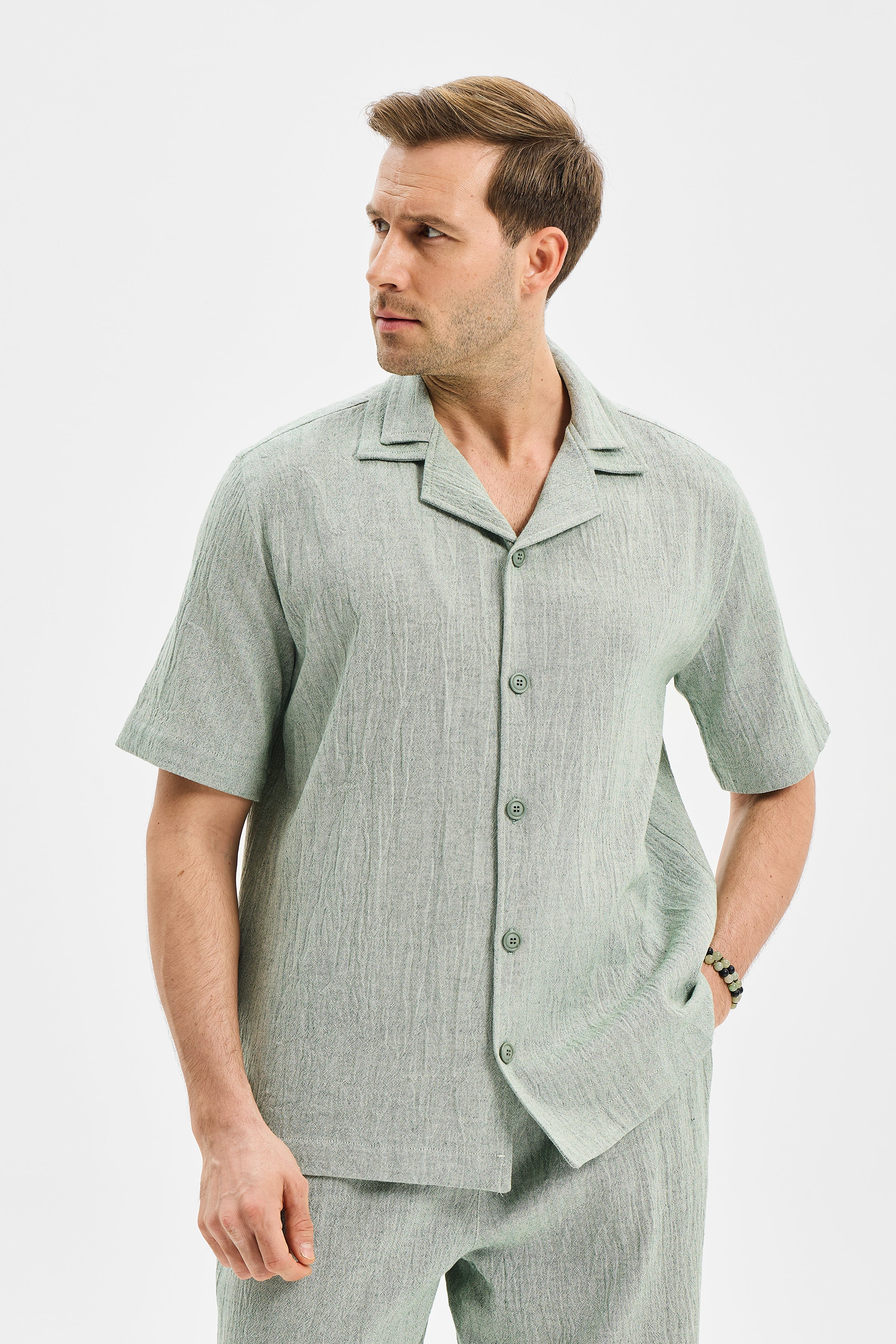 LAYER Erkek Çift Kat Apaj Yaka Gömlek Mint Yeşili modeli, TOK Şile Bezi kullanılarak tasarlanmıştır.