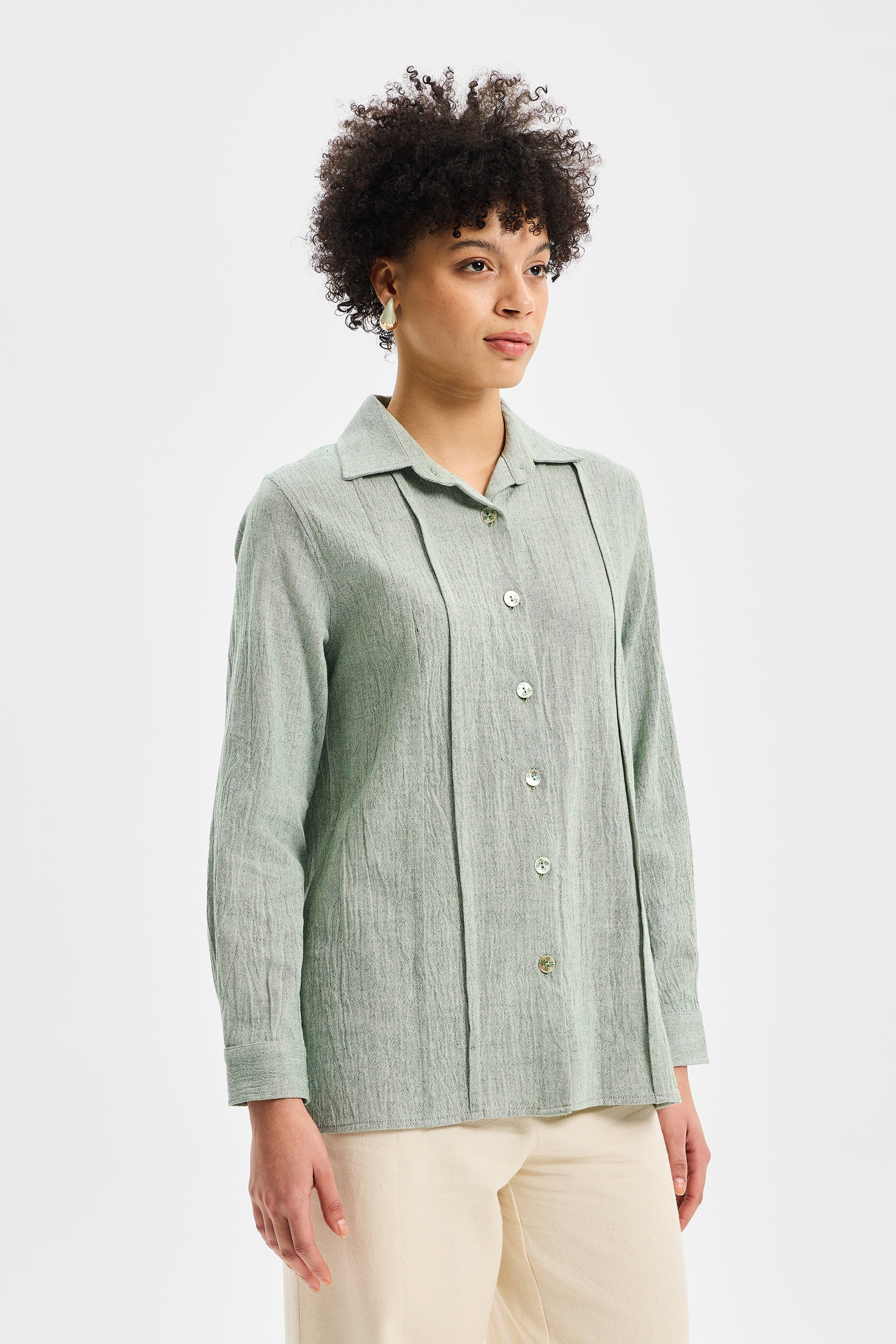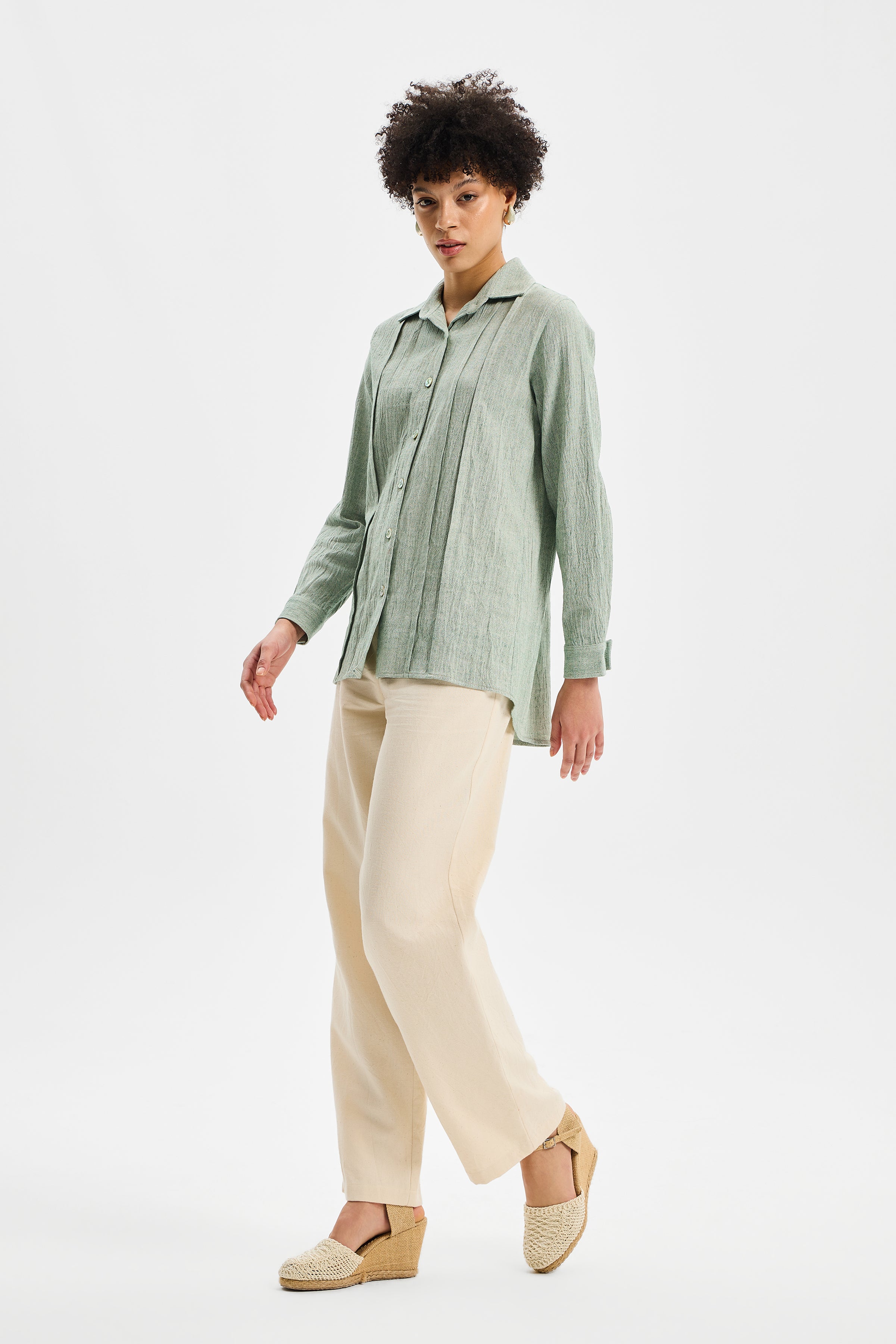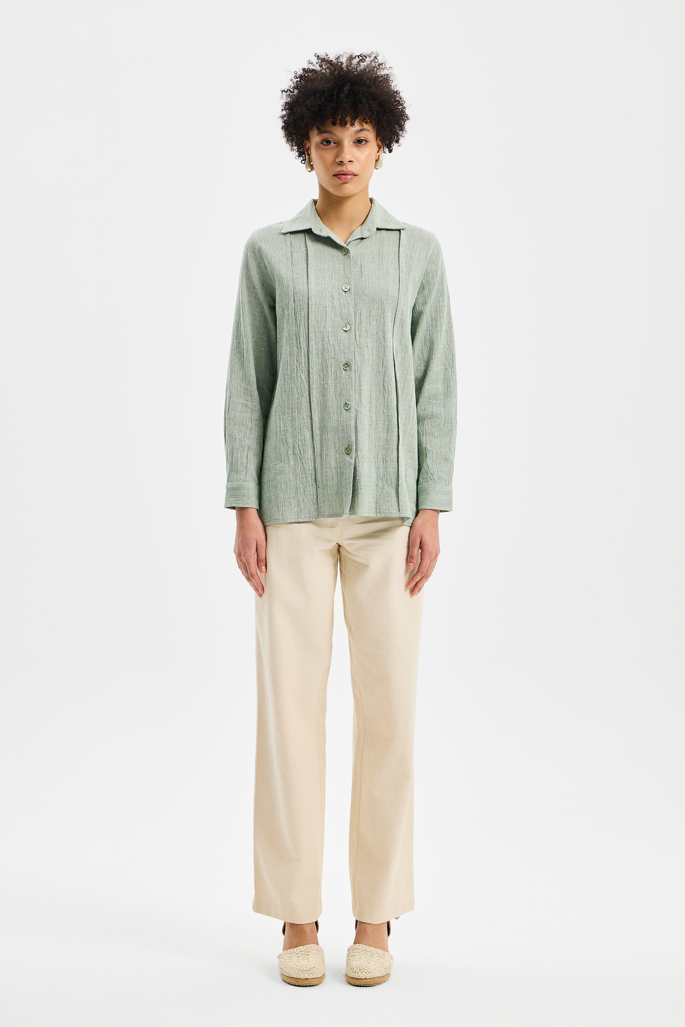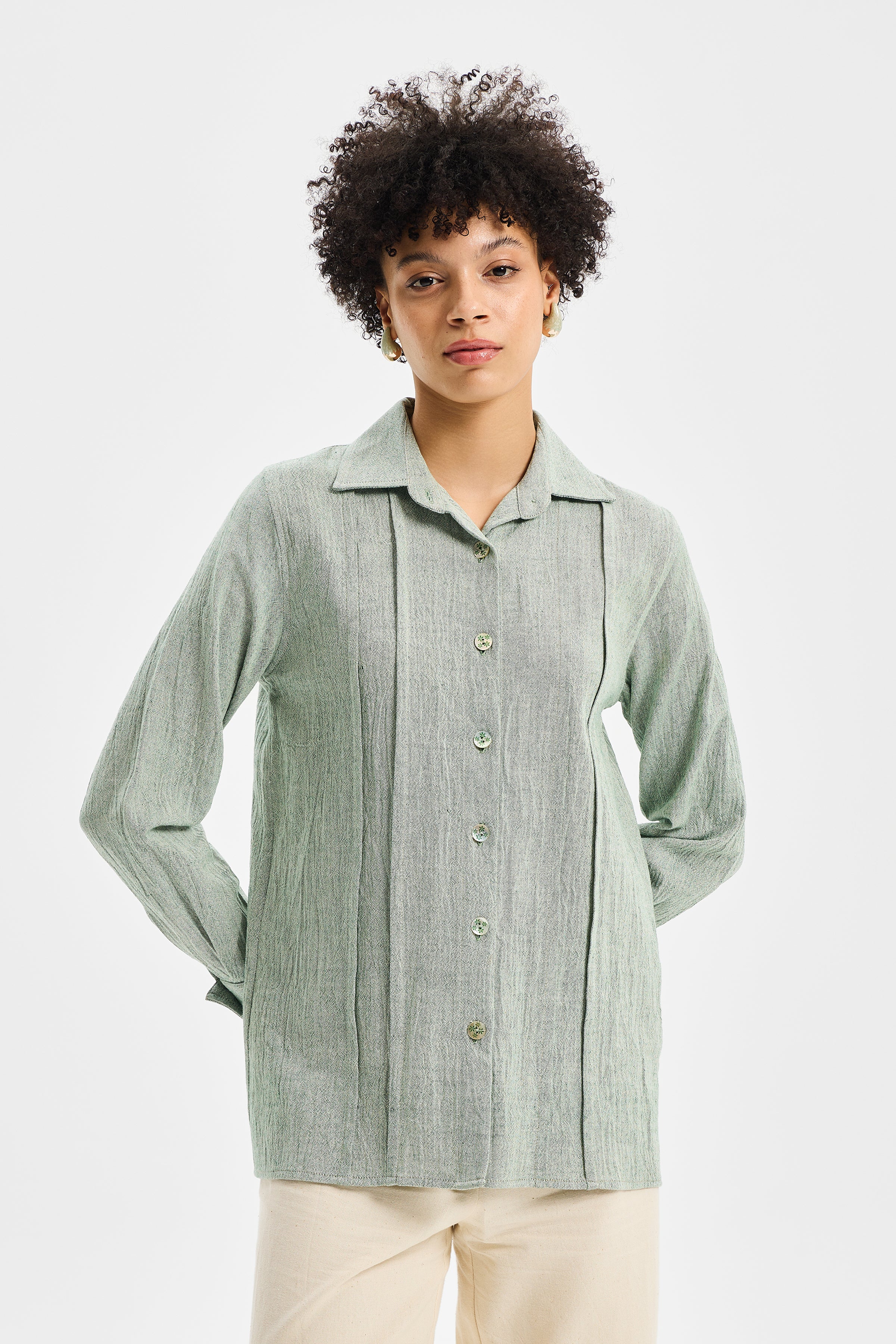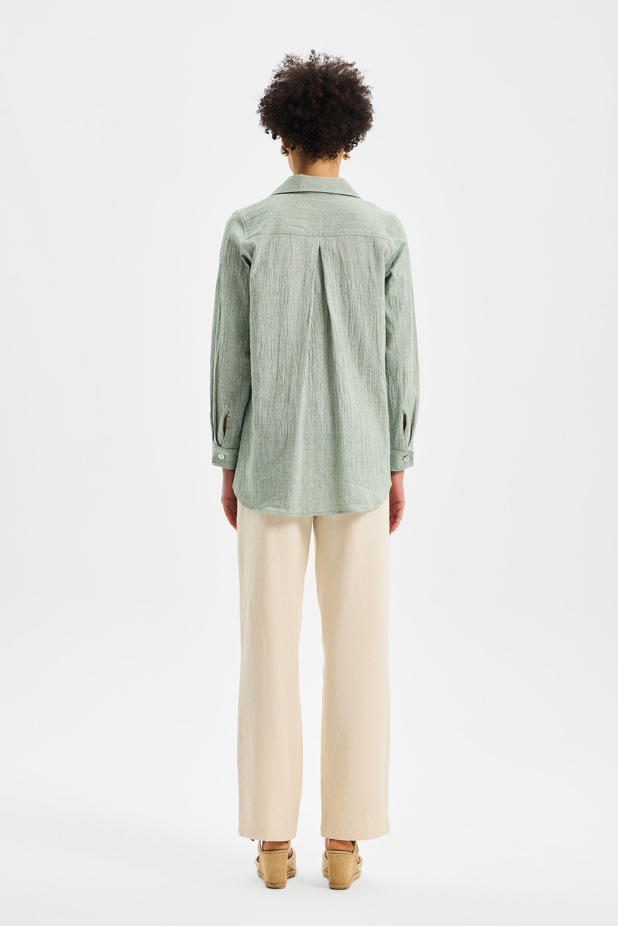 SPINE – Mint Yeşili Kadın Spor Dikiş Gömlek, TOK Şile Bezi kullanılarak tasarlanmıştır.